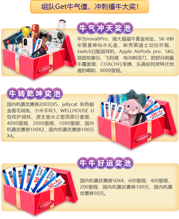 奖品清单:华为nova8Pro、SK-II新年限量版礼盒、Switch日版游戏机、国内机票优惠券、里程券、SKG颈部按摩仪……