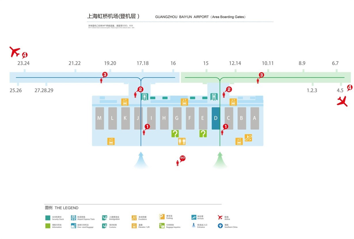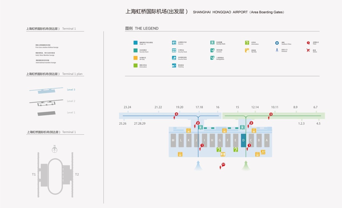 The check-in counters for China Southern Airlines at Shanghai Hongqiao International Airport are D10-D21, of which D19 is for first class and business class check-in, D20 is for SkyPriority check-in, D21 is for Sky Pearl economy class check-in, and D10-18 are for economy class check-in.