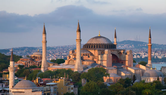 建於西元532年-西元537年,當時拜占庭帝國正處於鼎盛階段。作為世界上十大令人嚮往的教堂之一。聖索菲亞大教堂與藍色清真寺隔街相望。恢宏無比,充分體現卓越的建築藝術,從而成為了後來伊斯蘭清真寺的設計範本。如今,聖索菲亞大教堂是屬於基督徒和穆罕默德信徒共有的一個宗教博物館。