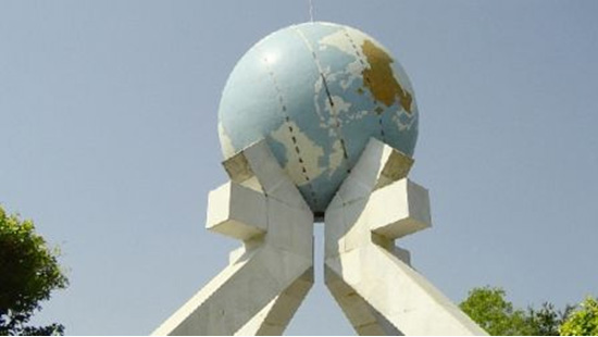 Shantou Tropic of Cancer Mark Tower is at longitude 116 degrees, 35 minutes 8.78 seconds, north latitude 23 degrees 26 minutes 32.49 seconds, 13.6 m high, 30 meters in bottom width. The Mark Tower base is a circular platform with ground granite bricks, and the main building is a globe supported with a bracket. The bracket is shaped "North", inlaid with white marble stones as a symbol of the Tropic of Cancer. The globe is 5 m in diameter, and the shaft is a stainless steel pipe 45 cm in diameter, which points the center of a circle with granite of the observation platform. At the summer solstice each year, when the sun is directly above the Tropic of Cancer, the shadow of the sun cast through the stainless steel may be seen at the centre of the observation platform. The east-west direction of the observation platform has a black slate belt, which is the entity of the Tropic of Cancer and indicates the dividing line between tropical and north temperate. In addition, the peak of the Mark Tower has Kua Fu Pavilion and Deng Lin Pavilion named after "the Classics of Mountains and Rivers"