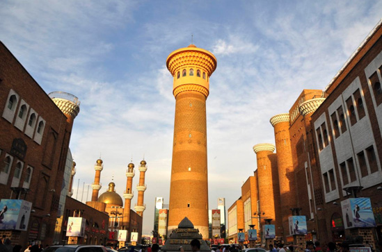 Xinjiang International Grand Bazaar, the major landmark of Urumqi, Xinjiang, which was completed in 2003 with Islamic architectural style and a total floor area of 100,000 square meters, is located in Erdaoqiao of the intersection of South Jiefang Road and Tuanjie Road, and is the largest shopping market with distinctive national features of Xinjiang. The Grand Bazaar includes the food court, banquet hall, observation tower and a mosque.