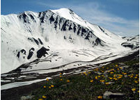 Bogda Peak, with an altitude of 5,445 meters, is the highest peak of Bogda Mountain in eastern Tianshan in the same line with two other grand peaks with respective altitudes of 5,287 meters and 5,213 meters. The unity of the three peaks looks exactly like a penholder, and the local herders called them three holy mountains. Above 3,800 meters is the perpetual snow area with snow gleaming white, winning the title of "Snow Sea".